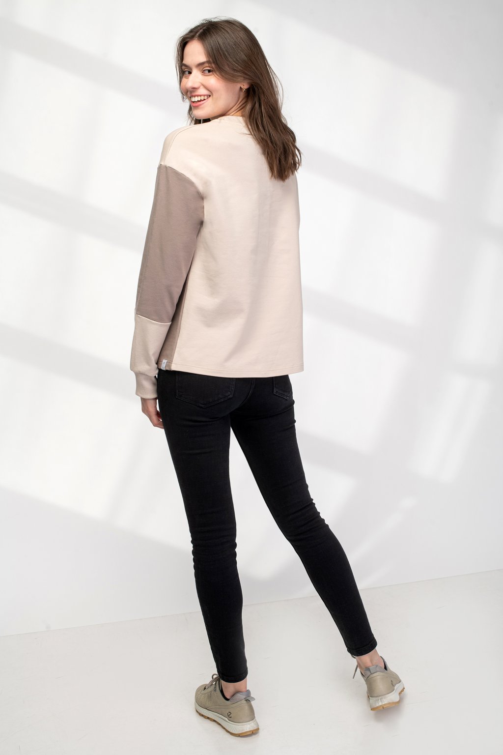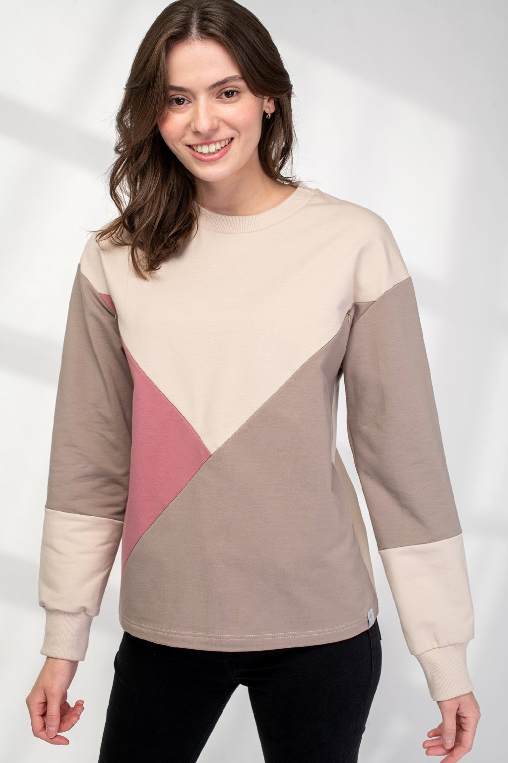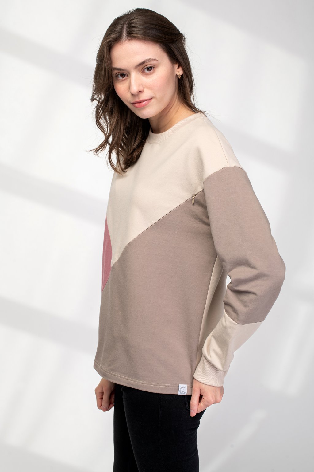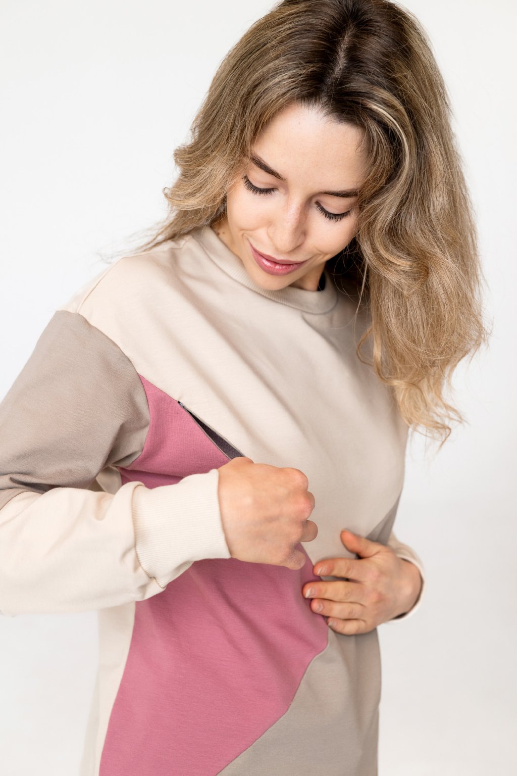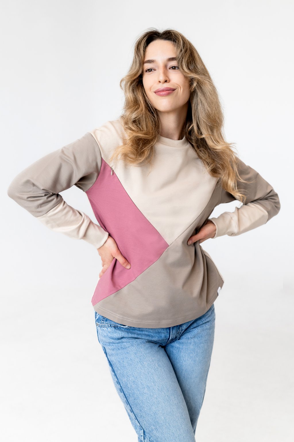 Mysleli jste si, že dokonalá kojicí mikina na doma i dlouhé procházky neexistuje? Pak nám dovolte vám představit Iris Colorblock, kousek v jemných barvách krásný na pohled, příjemný na dotek, prakticky střižený, na tělo kojící maminky jako ulitý. Mikina má navíc rafinovaně ukryté zipy na kojení v reliéfu. Díky tomu nepůsobí jako prvoplánově mateřské oblečení a zůstane vám pohodlnou společnicí pro chladnější dny také po ukončení kojení.