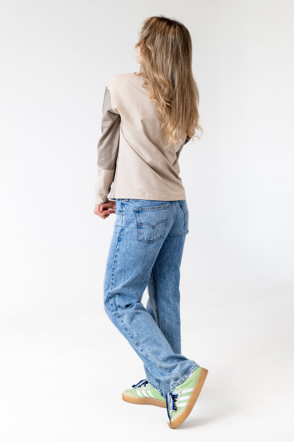 Střih kojicí mikiny je volnější, poddajný a sahá až k bokům, aby k vašemu tělu nepustil případný poryv studeného větru. Základ tříbarevného modelu tvoří vysoce kvalitní ekologická tkanina z bavlny a elastanu, v níž se budete cítit jako v měkkém hřejivém objetí. Rukávy a kulatý výstřih pak lemuje žebrovaný elastický úplet. Dlouhé pohodlné zipy na kojení jsme všili nenápadně do švů mezi jednotlivými barvami. Díky nim už nebudete muset během sychravého období řešit komplikované svlékání svrchní vrstvy vždy, když nastane čas nakrmit miminko. Důmyslné diskrétní řešení rovněž povyšuje mikinu na nadčasový kousek, který neodložíte ani po přerušení kojení, ale budete jej moct bez problémů nosit dál.